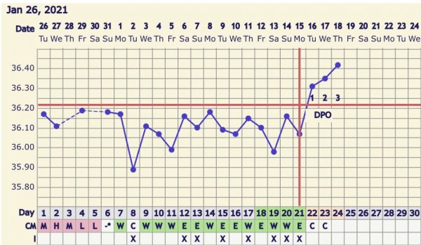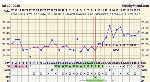 Eeendelig stigning! Overlykkelig over at jeg har tempet denne måneden, hadde aldri i verden visst at jeg hadde eggløsning så sent uten å kunne fulgt med på grafen. Håper virkelig at det klaffer nå :D