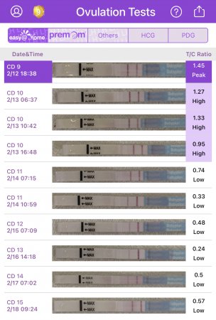 I tillegg til å tempe benytter jeg eggløsningstest og har vært glad i CB digital advanced eggløsningstest, med blinkende smilefjes på "høy fertilitet" og statisk smilefjes når man trekker "max fertilitet" Og EL skal være nært forestående. Kroppen sender meg også nå svært gjenkjennelige signal når EL inntreffer.