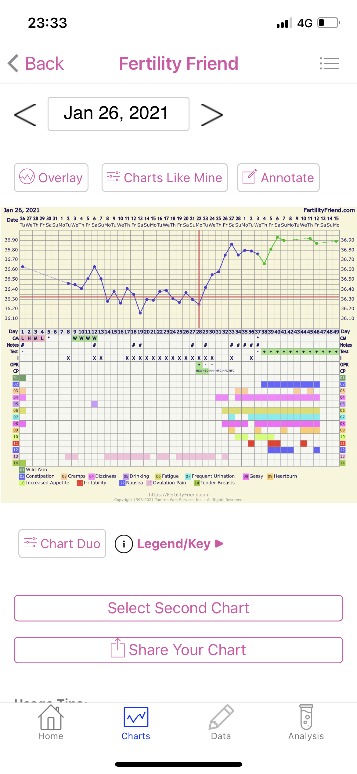 Man kan ikke se på en graf om man er gravid eller ikke dessverre, den kan bpde svinge opp og ned, ha en dipp eller ikke, falle brått for så å stige igjen eller holde seg høy- og alt kan skje både om man et gravid eller ikke