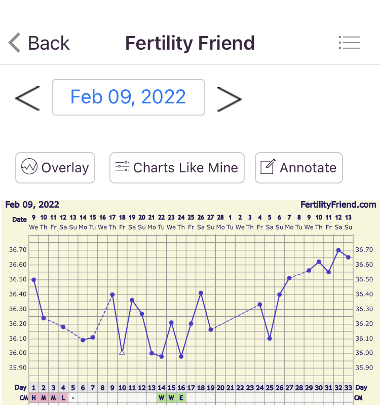 Ser jo foreløpig veldig fint ut. Men det er vanskelig å forutse graviditet med temping. Det er liksom ingen fasit, hvis du skjønner? Alle grafer er forskjellige. Men så lenge tempen holder seg høy så er det positivt. For å ta meg selv til sammenligning; jeg har alltid høy temp hele veien frem til dagen før eller samme dag som forventet tr. Hos andre personer synker tempen gradvis fra f.eks. 10 dpo, og det er enklere å forutse at tr kommer. Du må nesten tempe noen runder for å bli kjent med kroppen dinAlle er forskjellige