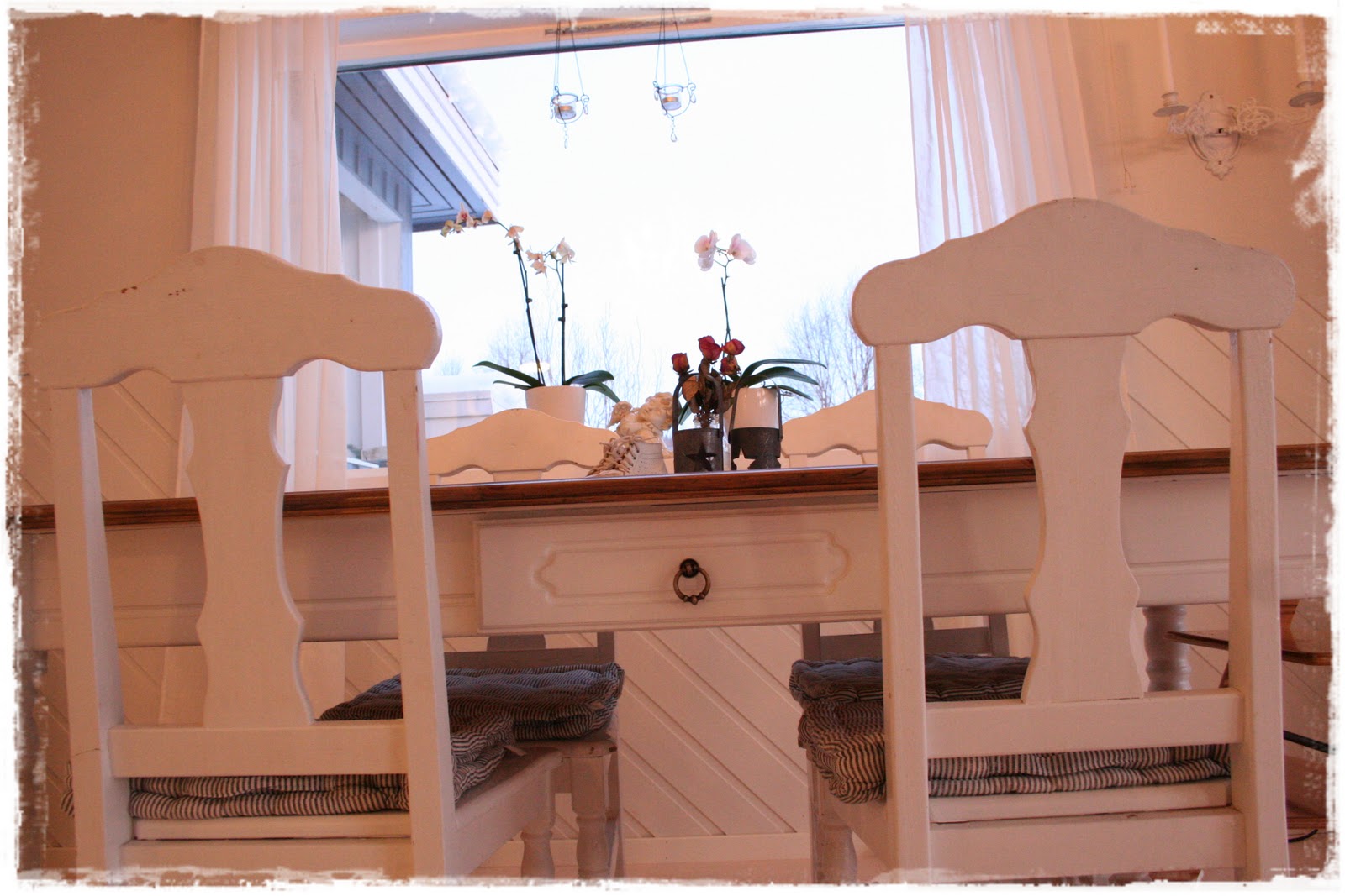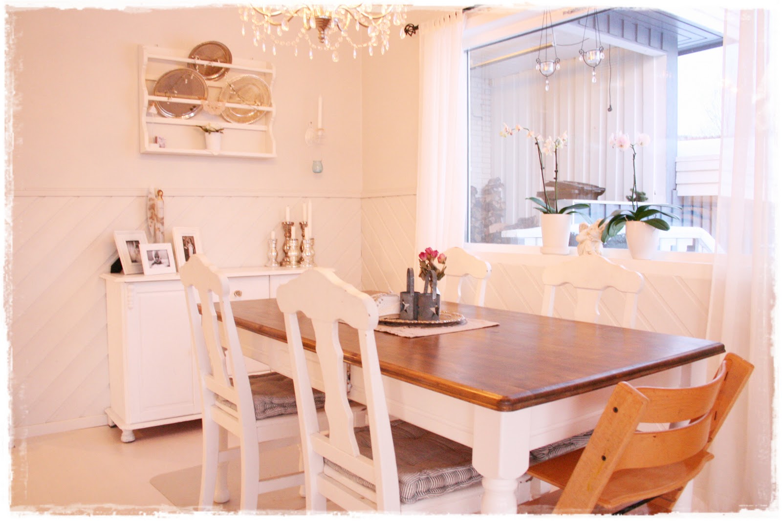 Tenkte å vise litt bilder av spisestua vår.. Det nydelige spisebordet jeg pussa opp her før jul! ...Sukk- er så fornøyd!