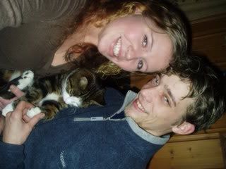 og her er meg og sambo og katten vår Pu[:D]brukte det med oss alle tre til julekort i fjor,hehe[;)]