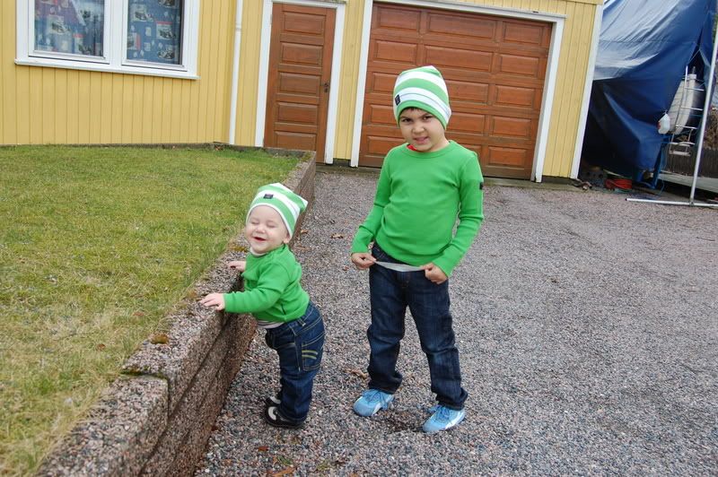 Åååh så fint det første bildet! Både guttene og at det ikke var en snøflekk i nærheten. Jeg er så drittlei vinter og snø nå. Vått, drittungt å trille, kaldt ++...